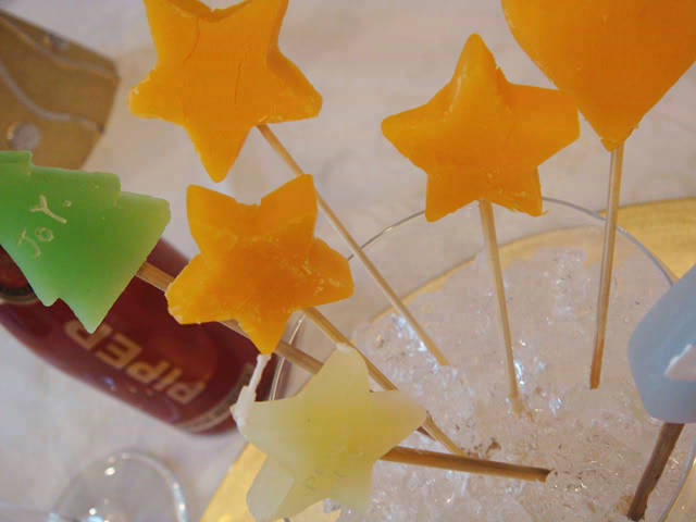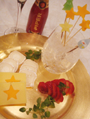 (ここに可愛いキャンドルを一緒に差しても素敵です。)グリュイエールは中心を星で型抜き、そこへチェダーチーズの同じ星型を埋め込みます。