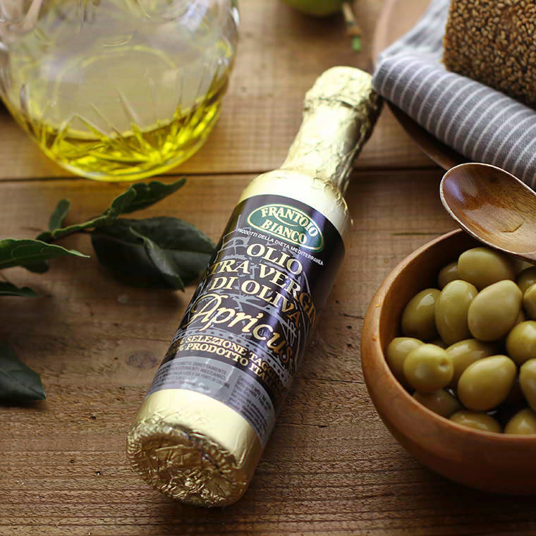 彼が熱く勧めてくれたオリーブオイルは、イタリアのとある田舎町のものでした。金色のパッケージがまぶしい『エキストラバージンオリーブオイルアプリクス』は、ふたを開けた瞬間に爽やかな香りがぶわっと広がり、上質さを感じさせるとろみも絶妙でした。