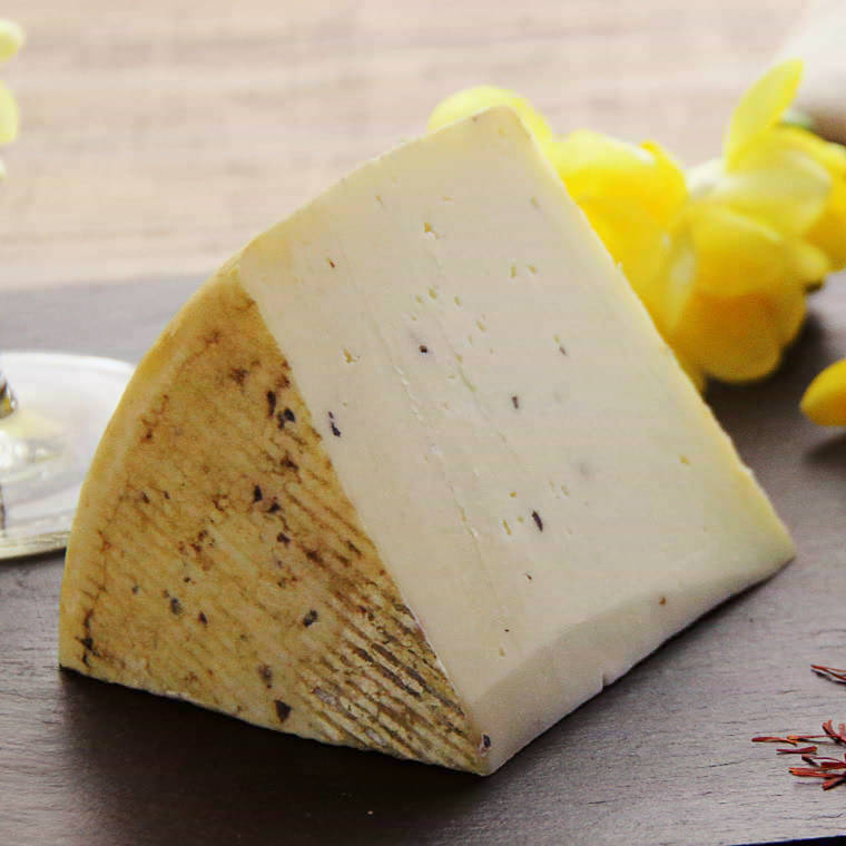 見た目には鮮やかな黄色のチーズ、 そしてトリュフ×サフランが練りこまれた、なかなか日本では見ない希少な逸品。
