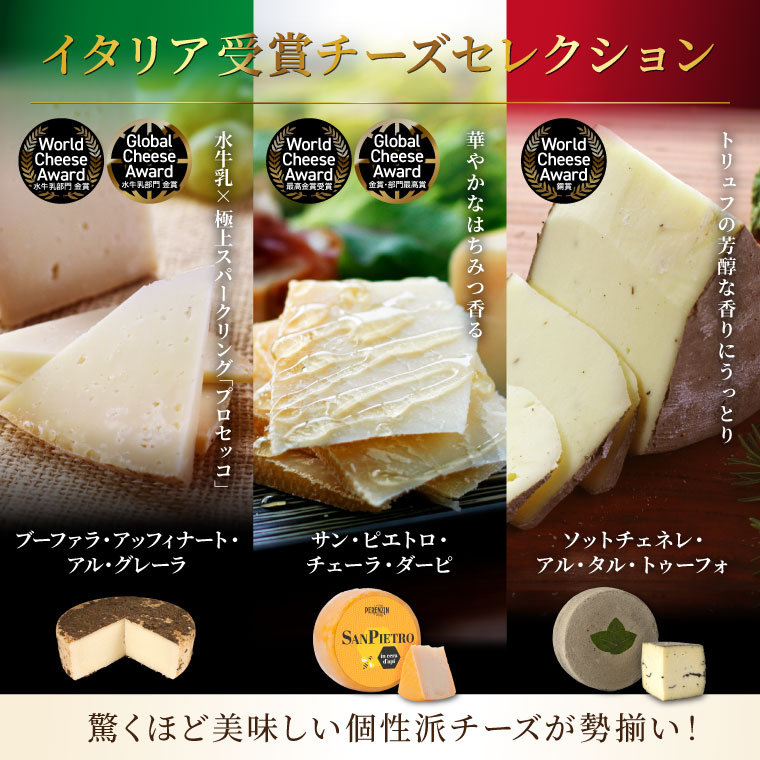 ワールド・チーズ・アワードで受賞したイタリアチーズ3種をセットにいたしました。