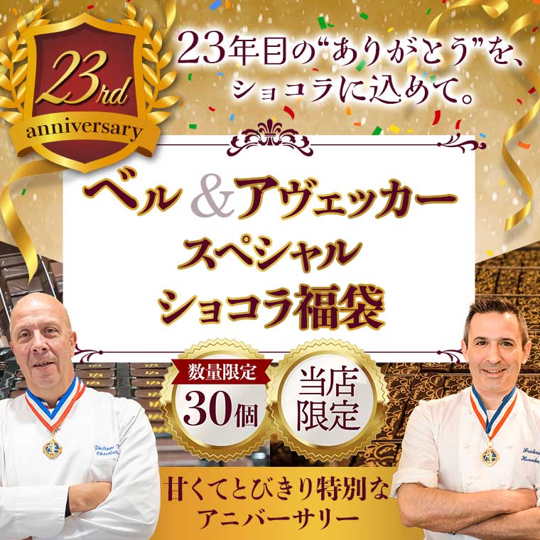 ただし、23周年を記念した特別企画として、アヴェッカー氏の新作ショコラについては、一足先にご紹介いたします。