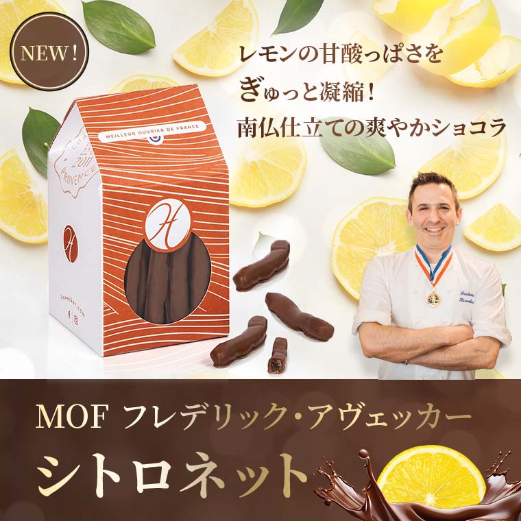 厳選したレモンの皮をじっくりと砂糖漬けにし、甘酸っぱく柔らかな食感に仕上げた後、口どけの良いクーベルチュールチョコレートでひとつひとつ丁寧にコーティングしました。一般的なシトロネットはダークチョコレートでコーティングされることが多いですが、アヴェッカー氏は優しい甘さのカカオ43%のミルクチョコレートを使用しています。