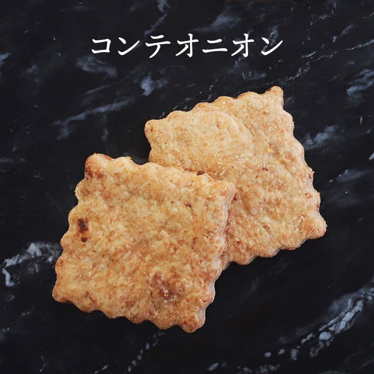 オニオンの香り、コンテの風味と塩気が合わさり、まるでオニオングラタンスープを思わせる、お食事系のクッキーの出来上がりです。