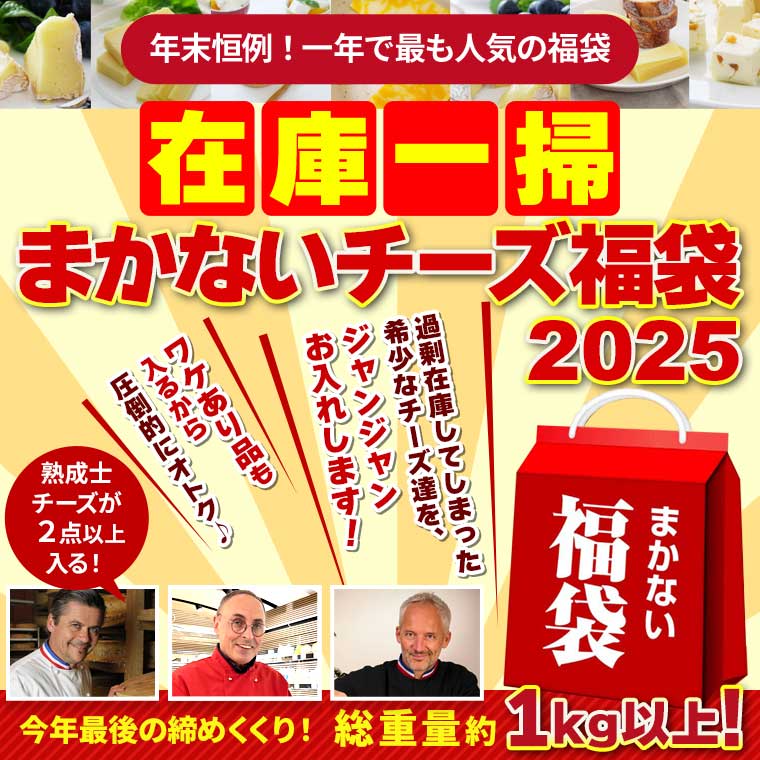 ボリュームたっぷりで、三大熟成士チーズが2点以上入る『在庫一掃まかない福袋2025』。