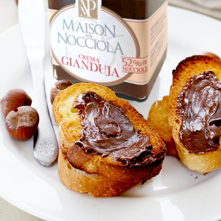 1852年にイタリア・トリノの菓子メーカーによって考案されたチョコレート菓子「ジャンドゥイオッティ」が原点になっており、ナポレオン政権下での取締りで不足していたカカオを補うため、地元で豊富に取れる「ヘーゼルナッツ」を混ぜたことから生まれたと言われています。