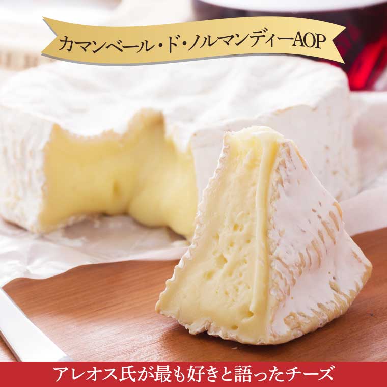 アレオス氏の「カマンベール・ド・ノルマンディーAOP」は、ミシュラン三ツ星レストランでも採用されている傑作です。ワインはもちろん、同じノルマンディー地方の名産であるりんごやシードル、カルヴァドスと合わせ、濃厚な味わいとりんごのさわやかな味わいのマリアージュを楽しんでいただくのもオススメです。