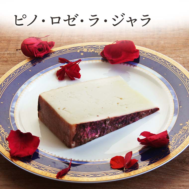 牛乳製のハードチーズを、香り高いイタリアのロゼワイン『ピノ・グリージョ・ロゼ』におよそ6ヶ月以上漬けて熟成したウブリアーコ(酔っぱらいチーズ)です。