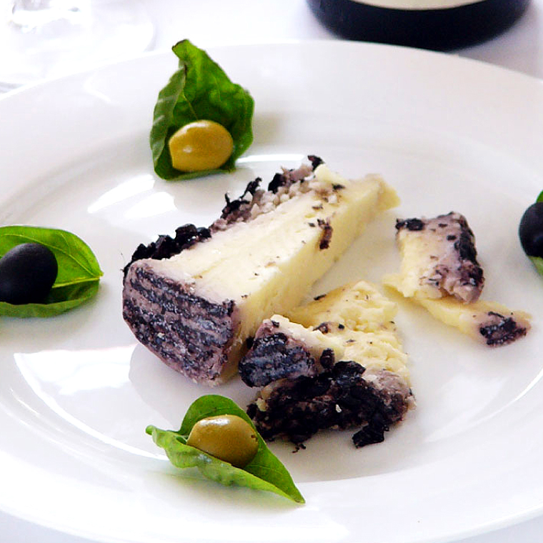 使用されているチーズは、無殺菌乳から作った、5ヶ月熟成の「テストゥーン」です。こちらも、季節によって牛乳製、羊乳製、山羊乳製、また混乳製など原料が異なります。 熟成期間は5~12ヶ月とやや短めのため、食感はしっとり、ホロホロ食感が感じられます。
