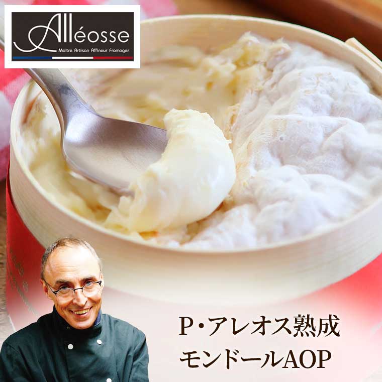 P・アレオス熟成 モンドールAOPカリ公 さんもともとモンドールが大好きで、レストランでもよく食べていました。御社で取り扱われるモンドールはムニエ氏の物も絶品ですが、私個人としてはアレオス氏の作品(あえて作品といわせてもらいます)が一番です。味わう人のタイミングに合わせ熟成されたその一品は、生産者の心意気さえ感じさせられます。ある意味で、このモンドールの味を知ってしまうと不幸かもしれません。なぜなら、もう他のモンドールが食べられなくなるからです。あるホテルのGM曰く「今まで食べた中で最高のモンドールですね。」ミシュラン一つ星レストランのマネージャー曰く「このタイミングでこの熟成感、恐れ入りますの一言です。」