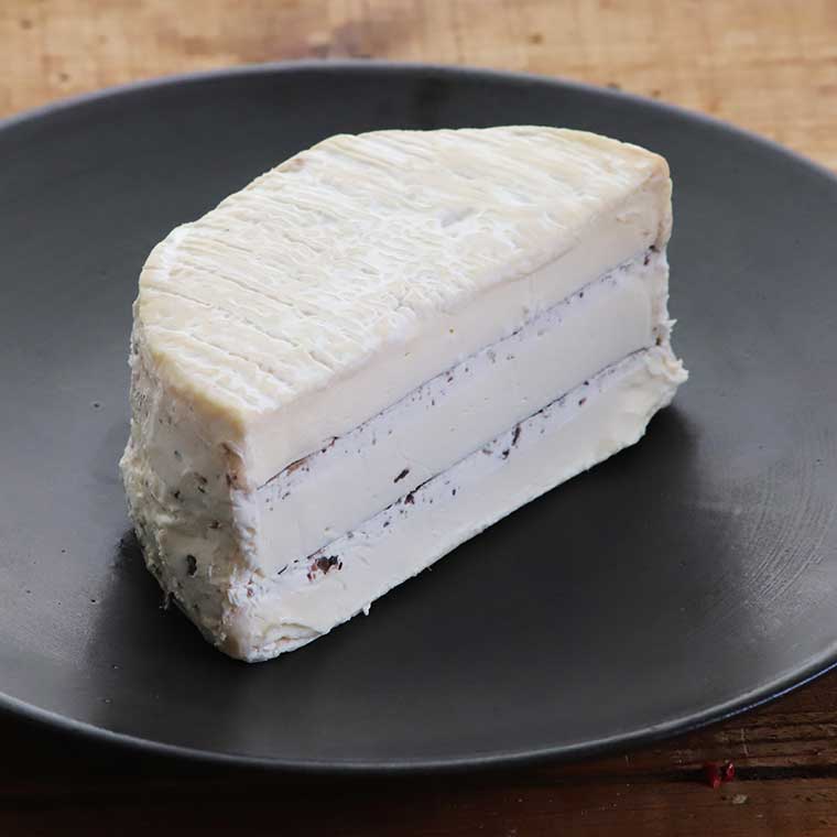 最上級の白カビチーズ「ブリア・サヴァラン」に、超新鮮な黒トリュフの贅沢なスライスを挟み、熟成しました。
