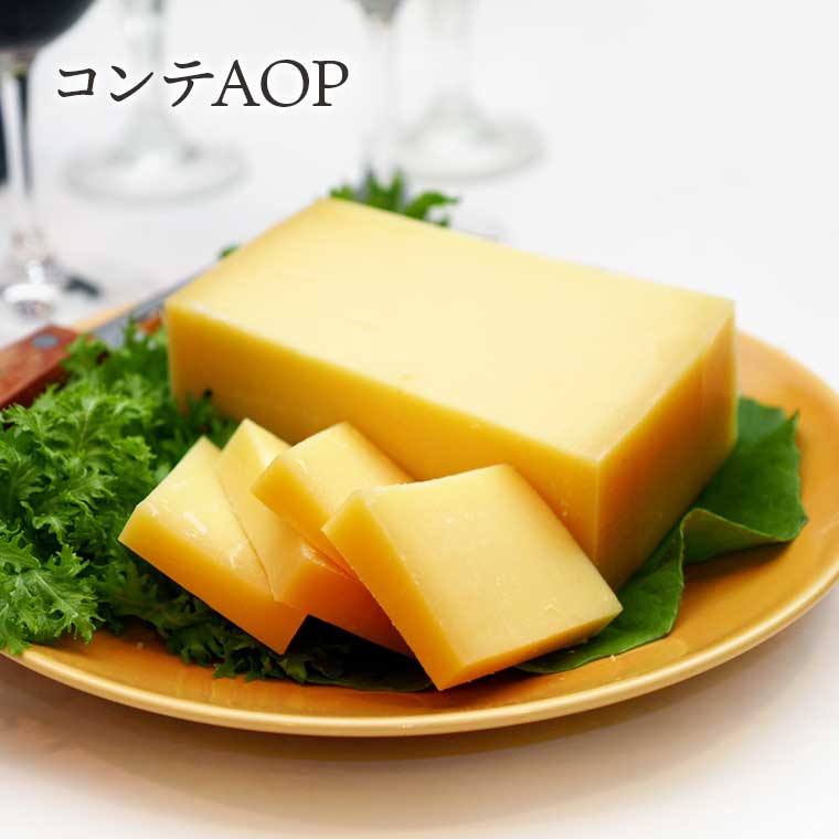 - 「チーズの種類が400とも600ともいわれている、チーズの本場フランスで「カマンベール」や「ロックフォール」以上の人気を誇っているのがこの『コンテ AOP』です。その歴史は古く、中世の頃にはすでに生産が始まっていたとのこと。フランスを代表するハードチーズで、1個あたり500リットルもの大量のミルクが必要で、その直径は何と「55〜75cm」の巨大サイズ! これを小さく作ってしまうと、根本的な味から変わってしまうため、現在でもこの生産方法が守られているのです。