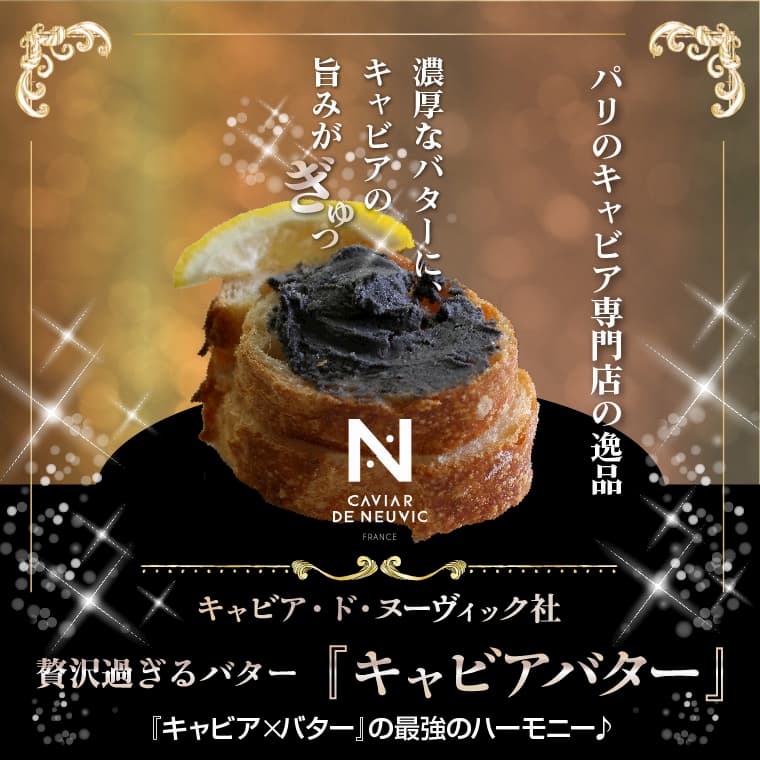 世にも贅沢なキャビアバターをこの機会にどうぞお試しください。