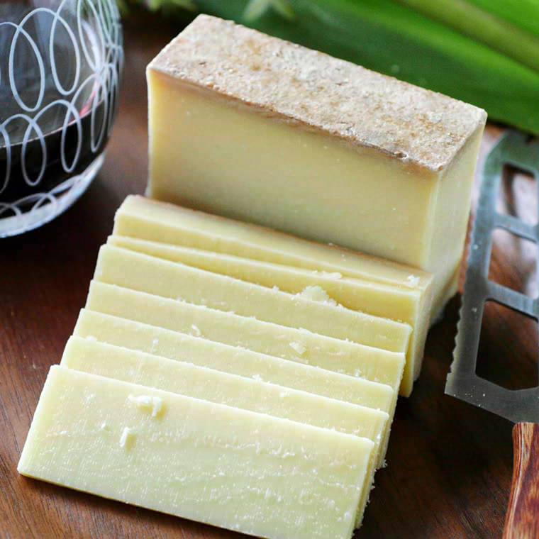 丹念に長期間熟成されているため、とても味わい深く、甘みとコクが一気に鼻まで抜けていきます。かみ締めるたびに、衝撃的なほどに旨味が広がる感覚は、他のチーズでは決して味わえないものでしょう。