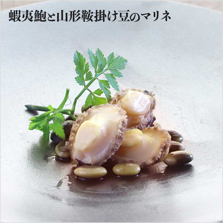 蝦夷鮑と山形鞍掛け豆のマリネ