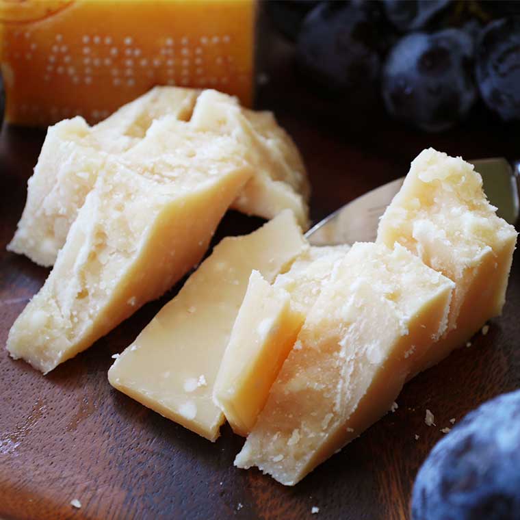 またこの『パルミジャーノ レジャーノDOP』は、一般的に「パルメザン」という商品名で販売されている粉チーズの語源となっているほどの歴史のあるチーズで、イタリアンには欠かせない食材でもあります。そのまま食べておいしいのはもちろん、おろして料理にふりかけるだけで、料理の味をワンランクアップできますので、パスタなどのイタリアン食材との相性はバツグンです。サラダにふりかけるなど、色々な組み合わせを楽しんでみてください。また旨みが凝縮したチーズですので、合わせるワインも熟成感のある上質なものをお選びください。