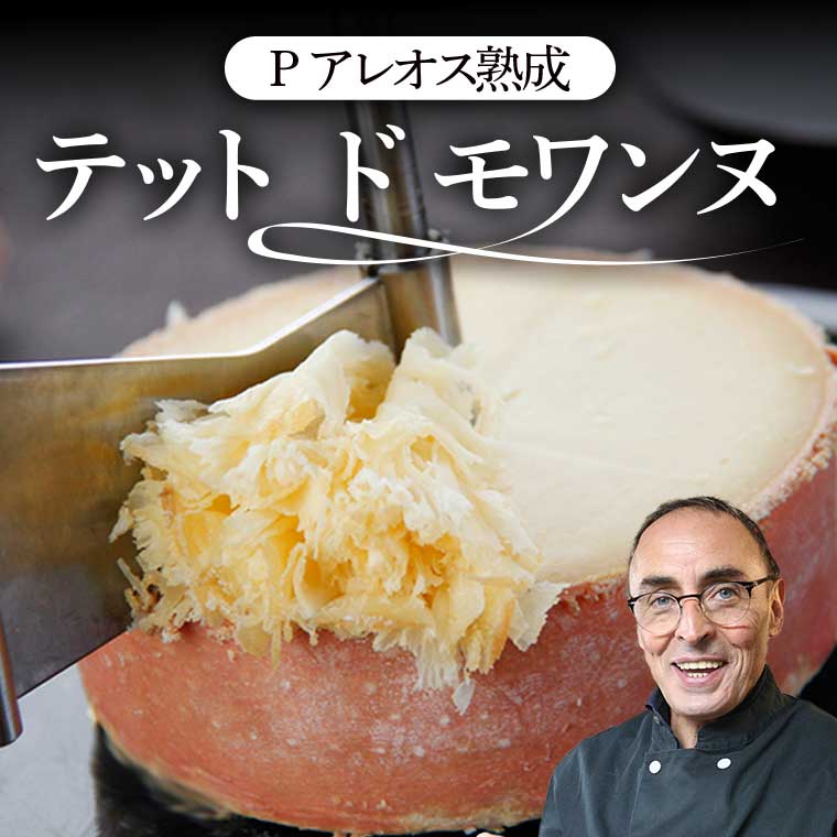 スイスのベルレー修道院で誕生したといわれるチーズで、テットは「頭」モアンヌは「修道士」で、"修道士の頭"と言う意味の名前となります。かつて農民が、修道士の数だけこのチーズを献納していたことに由来していると言われています。表面を塩水で洗いながら、エピセアというモミの木の一種から作った板の上で熟成させていきますので、表皮はねっとりと湿っていて、かなり強い匂いが漂います。まるでウォッシュチーズのようです。