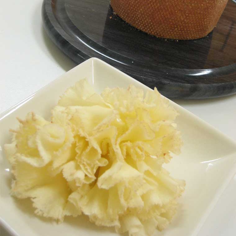 花びらのようにふわふわと削って食べると、コクのある濃厚な味わいがほどよくなり、舌の上でじんわりと溶けていく感じが特徴です。カットでもお楽しみ頂けますが、ぜひ薄く削ってその風味をお楽しみください。なお、『テット・ド・モワンヌ』はぜひ「ジロール」で削って召し上がっていただくのがオススメですが、代わりとして、スライサーで表面を薄く削っていただいてもよいでしょう。